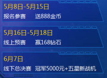 1.报名阶段:2014年5月8日(10:00:00)—5月15日(24:00:00);报名成功即可获得888金币奖励。