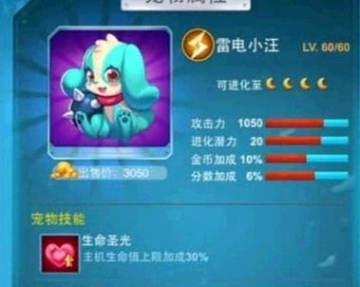 全民飞机大战月亮宠物雷电小汪满级属性(Max60级)