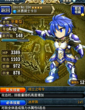 3、打法:直接第一队放最强队上吧.因为卡尔3分之2血时貌似会变强,攻击上升,所以趁他前期弱,攒一下奶的bb,然后看见血量低于4000就考虑奶或者吃药,然后就这样打下去,如果队伍配置合格,应该卡尔就能到手了。
