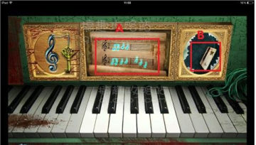 当所有的音符都弹奏正确的时候,音符会变成蓝色,在B处就会出现一张磁卡,成功过关;