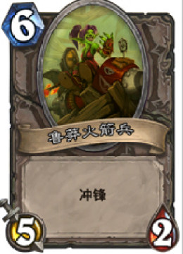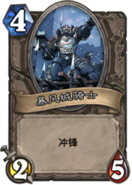 再看同样拥有冲锋的鲁莽火箭兵,他需要6费,甚至攻击还要比火车王少。4费拥有冲锋技能的暴风骑士,5血2攻,基本也只有换掉对方随从的作用。