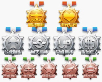 在新版本成就系统中,共有14项成就,分别为特殊成就3项、金成就2项、银成就4项、铜成就5项。不管你是拥有着超多满级战机的“超级机师”;还是飞行总长不断的“飞跃极限”的游戏达人;或者是不断累积突破记录的“突破自我”……总有一个称号能够让你随心展魅力,开心做达人。