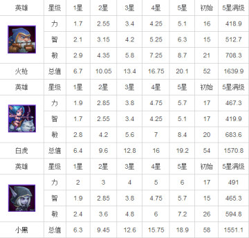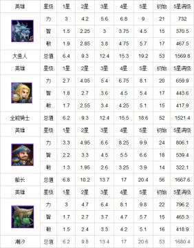 在刀塔传奇游戏中,力量、智力、敏捷是英雄最基本的三项属性,不同星级属性成长都不一样,这里给大家带来一些常用英雄的属性成长数据。