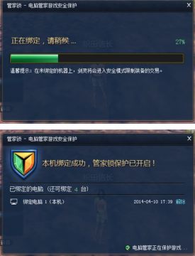 只要绑定管家锁以后,你要是在没有绑定的电脑上登陆的话,你的任何装备和道具都是无法被交易、摧毁、寄售、分解的。