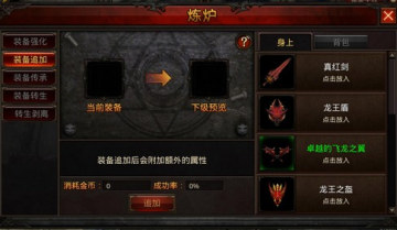 装备追加系统简介:通过装备追加系统可以使装备获得多种额外属性,让玩家的装备全方位的提升。