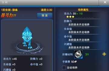 随着不断的培养提升坐骑,角色属性-攻击力、防御力、生命值、命中值、闪避值