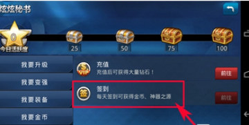 在炫炫秘书界面中找到【我要金币】或者是【我要钻石】就可以找到签到功能,点击前往即可。