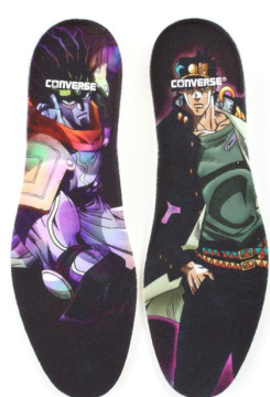 匡威公司将与《乔乔的奇妙冒险》合作推出ALL STAR系列帆布鞋第二弹,该鞋是以第三部主角・空条承太郎为概念设计,款式也从高筒改为低筒,搭配日本传统织布技术西阵织,更加入了经典台词「欧啦欧啦欧啦欧啦」等多项特色,售价11880日元,其预约从今日开始至2014年6月15日截止,发货时间为12月下旬,各位乔乔的奇妙冒险粉丝不要错过了。