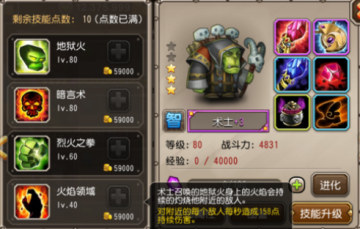 3技能,地狱火的加强技能,提高地狱火的伤害,还能造成范围晕眩,实属强大,因为地狱火一般都出现在敌方的中后排,所以这个技能就决定了地狱火的恐怖之处了,掉下来晕你,地狱火还晕你,哈哈哈。。由此可以确定,术士在刀塔传奇里应该是个召唤师,而不是个法师。。只要术士能够放出大招,那么他绝对是个难缠的对手。