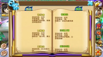 日常任务分为竞技和探索两大类,竞技包括:积分赛、天阶赛、天狼岛。探索包括:宾果乐、乐园之塔、魔法试炼、星空之匙