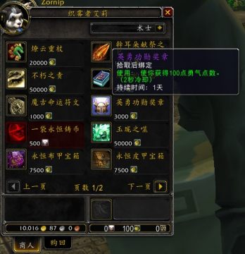 其次价值3000个永恒硬币的英勇功勋奖章这个道具可以让你的角色获得100点勇气点数。你可以在永恒岛天神庭院的织雾者顾严处购买勇气证明。需要注意的是,英勇功勋奖章不能让你获得超过每周上限的勇气点数(1000点上限),不过它可以让你有更多方式来升级你的装备。