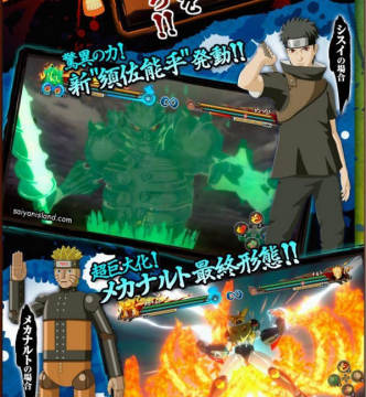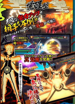 《火影忍者究极风暴 变革》觉醒型角色情报公布 来源: 飞翔小编feichenpan 2014/5/20 14:59:04 浏览量:836 BNGI近期公布了《火影忍者究极风暴 变革》觉醒型角色的相关情报,在新作中漩涡鸣人可以开启九尾觉醒状态,宇智波止水的觉醒为散发绿色火焰的须佐能乎,而机械鸣人则可召唤九尾机甲合体,场面颇为壮观。《火影忍者究极风暴 变革》预计2014年9月发售上市,登陆PS3和XBOX360和PC平台,该作是火影忍者究极风暴系列的最新作品,承袭系列 “超动画” 的精彩动作演出,收录全新的招式、超过 100 名可自由操作的角色与进化的游戏系统,带给玩家革命性的全新体验,敬请期待。