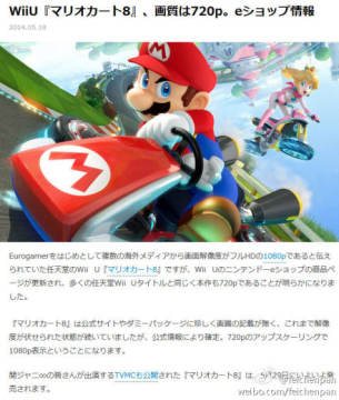 任天堂WiiU游戏大作《马里奥赛车8》即将于2014年5月29日在日本发售,美版于5月30上市,根据日本游戏网站的情报,该作实质分辨率为720P,而之前Eurogamer报道的1080P分辨率实际上属于升频拉伸,原生分辨率就为720P。值得一提的是《马里奥赛车8》单人游玩能保持60帧画面,而四人同屏游玩则是稳定30帧。
