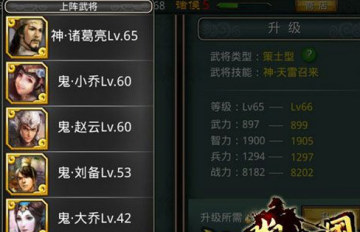 作为阵容的核心诸葛亮,主力法系输出。被动,神算,雄师,谨慎。技能6耗(鬼),全体法系高伤害。诸葛亮在《啪啪三国》中,绝对是首选武将,一旦拿到,放弃你的其他一切金卡,全力强化诸葛亮绝对没错,当然,赵云和周瑜要留下,一个作为3枪之一给诸葛当肉盾,一个是诸葛当随从(黄月英给诸葛亮当随从效果也不错)。一个雷秒杀一切,再有小乔的辅助效果,能完美确保秒杀一切敌人也可以采用2枪3弓阵型,增加一个辅助,进一步强化诸葛的智力,不过容易让诸葛陷入危险之地,3枪2弓最为稳妥。