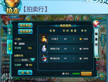 2)需要出售物品的玩家把物品挂在拍卖行内一定时间,只设一口价,收取少量绑银做保管费,不退还。