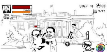 游戏的主人公就是传说中的美帝爸爸和战斗民族俄罗斯的首脑奥巴马和普京两人,玩家可以选择自己喜欢的其中一个。而你需要做的就是首脑一起击败对方。除了普通攻击外,奥巴马和普京都有属于自己的特殊攻击和必杀技,还能使用道具来攻击敌人。注意特殊攻击能够使用的次数是有限的。