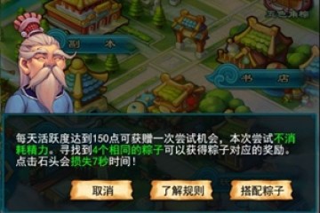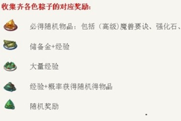 活动期间,玩家可在主界面右上角点击五色角粽按钮进入寻物游戏,玩家可选择收集4个相同的粽子,即可获得该粽子对应的奖励。