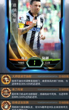迪纳塔莱,不仅有大师级凌空抽射,还有单刀专家和前锋进攻鼓舞,个人实力强还附带团队增益,实在是难得一见的好卡,玩家们如果有机会获得,不要犹豫,果断将资源花在他身上,重点培养。