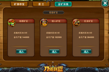 在《刀塔联盟》中,整个大陆分布着诸多的神秘矿洞,在矿洞的深处,蕴含着无穷无尽的金矿,其中地精矿区、矮人矿区和巨龙矿区最为知名。在矿区内,每隔一段时间就会有大量的金子从地底中被开采出来,玩家们可以携带苦工前来采集。不过,由于三大矿区的知名度吸引了大量来自不同地区的专家,因此在采集时也不免会被一些掠金者偷袭,当然只要反击成功,那么在三大矿区也终将有你一席之地。