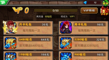 1、钻石最直接的方法当然是充值了。不管是购买月卡还是直接购买钻石都可以很快速的获得钻石,而且这样还能成为VIP,获得一些不错的特权。