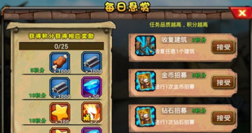 3、玩家完成任务之后可以获得一定的积分,只要积分积攒到一定的数量就可以获得钻石奖励。10积分就可以获得50钻石的奖励,25积分就可以获得100钻石的奖励。