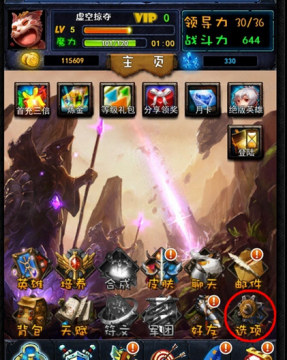 2、然后我们可以在游戏首页看到【选项】按钮,单击进入选项窗口