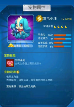 超强的攻击力是这对宠物的最大优势,目前暂未推出,我预测一只价格不低于雷电小汪。一只飞廉神将可以为主机攻击力加成20%,两只可以叠加至40%,而机动悍将900的基础攻击力,可以提升至1260的基础攻击力,再加上两只雷电小汪都为1050的战斗力,这种超强的组合战斗力,光想想就觉得不可思议。机动悍将900的基础攻击(不包括它的追踪导弹),在目前四架有技能的战机中是最低的,而机动悍将独特回血技能,配上这种战斗力,who怕who,敌机放马过来。