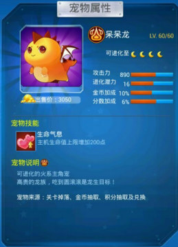 这是一对三月宠,它们最高级55级,满级攻击力都为760。攻击力上,相较于四月宠,确实显得低,但请不要忽略它们不错的技能以及相对于四月宠较低的升级费用。