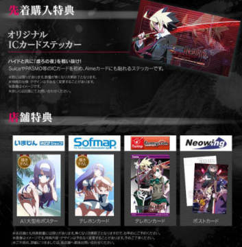 FRENCH·BREAD工作室打造的2D格斗游戏《夜下降生ExeLate》将于2014年7月24日发售,登陆PS3平台,官方现今公布了该作先行预约特典和各大商铺特典,其中预约特典为世嘉专属Aime插卡系统、Hyde主题的街机版IC对战角色卡贴纸,商铺特典分别为A1尺寸Orie主题原创绘制大型挂布,原创绘制电话卡,明信片等物。