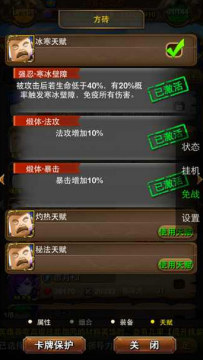 方砖叔的3个天赋分别为:冰寒天赋、灼热天赋、秘法天赋,分别拥有的技能如图: