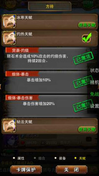 最后总结下,顺便介绍秘法天赋。秘法天赋,秘法天赋的3回合无敌,让方砖有了当T的作用。但在目前橙紫没有组合的情况下,用处不明显。且攻击力不高。最终还是需要技能的搭配。目测契约技能的崛起。