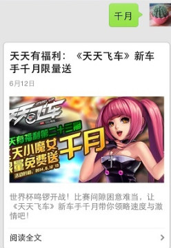 2、发送消息“千月”,然后会收到一条新闻消息,如下图,点击进入;