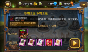 推荐阵容:同上。强力法师也可以上,很菜的一个BOSS。