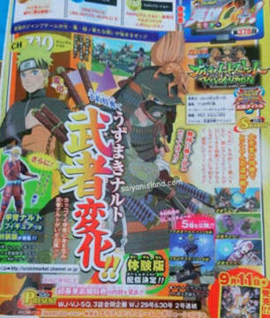 《火影忍者究极风暴 变革》日版预计9月11日发售 来源: 飞翔小编feichenpan 2014/6/15 21:45:13 浏览量:263 根据最新一期日本游戏杂志情报,BNGI动漫改编游戏《火影忍者究极风暴 变革》日版预计2014年9月11日发售,登陆PS3和XBOX360,PC版发售日未定,此外游戏体验版也将于近期免费配信,敬请期待。值得一提的是《火影忍者究极风暴 变革》预约特典为漩涡鸣人战国武者服装,头盔上的小九尾装饰看起来十分霸气。