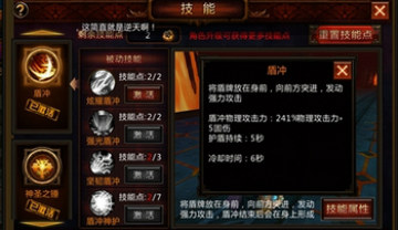 盾冲:将盾牌放在身前,向前方突进,发动强力攻击,盾冲结束后会在身上自动形成;