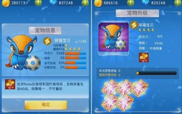 球福宝贝不仅仅拥有强大的生命恢复能力,攻击里也是相当高,满级60级后攻击力高达1050,是当前攻击力最高的宠物之一。宠物时代,战机什么的都弱爆了,即使是只有1级的小黄机配有两个球服宝贝也可以轻松击败简单Boss。