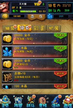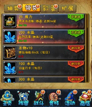 玩家每日登陆游戏后,都可在游戏商店中领取每日登录奖励100水晶