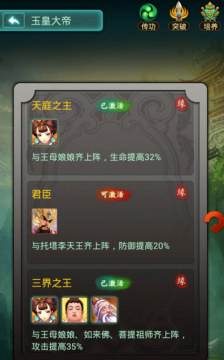 阵容的核心在于配缘——缘分可以对某一属性值进行加成,提升阵容的总体战斗力。缘分有人物缘,装备缘。人物缘是最核心的缘分。在游戏的前期,建议还是先注意自身比较容易凑成哪个四人缘比较重要。目前比较强势的四人缘有上古之神、人间强者、神兽、终成眷侣、取经师徒等,其实要依据本身所持有的卡牌来选择缘分,尽量选择比较强势的缘分,如果缘分中卡牌品质较低,可以通过突破来提升。在四人缘的基础上,在对其中核心的卡牌搭配其二人缘。至于装备缘,则需要依据你所持有的装备进行搭配了。