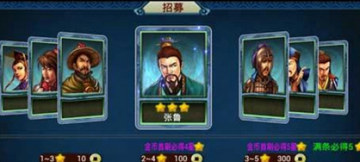 1、英雄招募:点击游戏界面最下面的“招募”可以进入英雄招募界面。这里是为玩家提供高级英雄的主要途径之一。玩家可以通过招募来得到对应的星级英雄,当招募的气运槽满时一定可以获得高级英雄哦。
