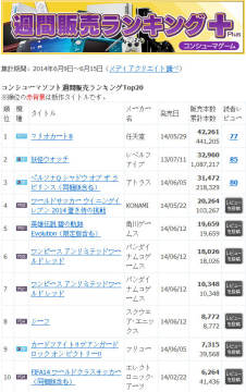 《马里奥赛车8》重返日本游戏销量排行榜首位 来源: 飞翔小编 2014/6/20 15:06:16 浏览量:314 根据上周2014年6月9日至6月15日的日本游戏销量排行榜,任天堂WiiU游戏大作《马里奥赛车8》重返排行榜首位,获得第二名的是3DS掌机游戏《妖怪手表》,紧随其后的同样是3DS掌机游戏《女神异闻录Q迷宫暗影》,下面就来一起看看吧。2014年6月9日至6月15日的日本游戏销量排行榜前十位: