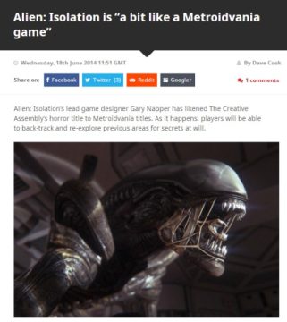 恐怖大作《异形 隔离》游戏时间长度为15个小时 来源: 飞翔小编 2014/6/20 21:29:37 浏览量:341 SEGA恐怖游戏新作《异形 隔离》制作人Gary Napper透露,该作游戏时间长度为15个小时,玩家可以来回重新探索以前区域中的秘密,这和2D横版卷轴游戏《恶魔城》或《银河战士》系列采用的地图/探索机制类似。《异形 隔离》的本质是开放世界,充满了重复探索和发现的价值。