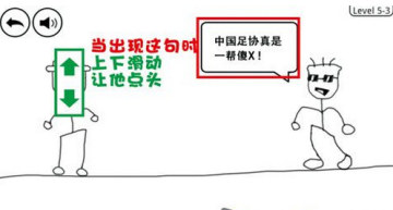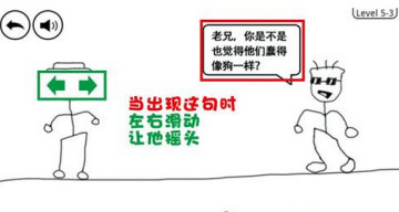 《奇怪的大冒险》5-3视频图文攻略 来源: 飞翔小编 2014/6/24 15:04:52 浏览量:435 奇怪的大冒险又是一部虐心的解密游戏之作,千万别相信游戏中的任何温馨提示,下面给大家带来5-3的视频图文攻略。1、当右边的人说话,立刻在左边小人头部位置做下滑手势,让其点头。2、当右边人再次说话的时候,在左边小人头部位置左右滑动,让其摇头。过关。