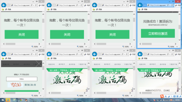 今天我的左第一个窗口,还没到点就自动跳了,第二个一点就提示如下。如果不是我第一个页面跳的话,那就是吧友帮我抢到了,第4个页面时查询激活码的。