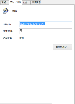 随便打开一个网页,点击五角星加入收藏夹。在该标签上右击(如图,兑换)点击属性,在URL栏输入javascript:DoDuiHuan( ) 常规栏可修改标签名字,点击确定。
