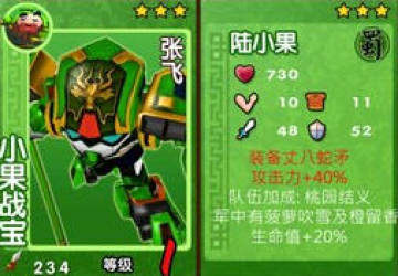 小编点评:小果战宝属于蜀军团队中的佼佼者,生命、攻击、防御、护甲都不错,武器和队伍加成还能增加攻击力和生命值,弥补了原本的不足。价格较低,是所有玩家都值得拥有的一个果宝。