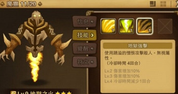 地狱之火这个魔灵不管是作为队长还是作为一个普通队员都是十分给力的,不过地狱之火的缺点也是十分的明显,那就是十分的脆皮。地狱之火这个魔灵的技能大家可以使用火属性来提升。