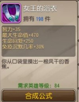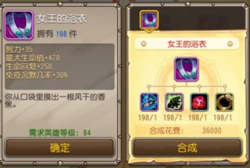 橙装合成60碎片,相比紫装的50,小冰冰觉得还是可以接受的。而第一张图装备收集略难,毕竟有两个紫装+一个蓝装+一个黄装,但女王的浴衣也会是后期比较追逐的装备。而且大家一定要多多打公会副本,入手紫装不再难~