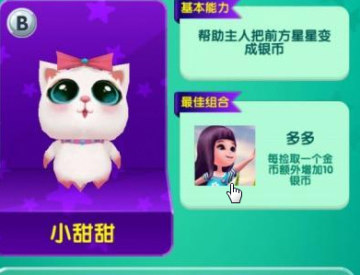 从目前来看,S级的宠物是最好的。但是要根据当前的角色去搭配宠物,游戏中已经有提示我们每只宠物最佳组合是哪个人物,如小甜甜搭配多多,所以,我们可以根据游戏中的提示来搭配宠物,而不是看宠物的级别来选择,这样才可以发挥宠物和角色搭配时的相辅相成的技能。比如大眼仔搭配小贝儿,可以触发[每捡取一个星星额外增加20分]技能。