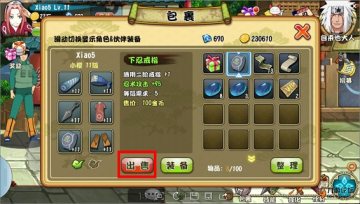 包裹里也会有一些用不到的装备,也是可以卖钱的。首先选择想要出售的装备或材料,点“出售”。