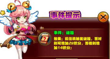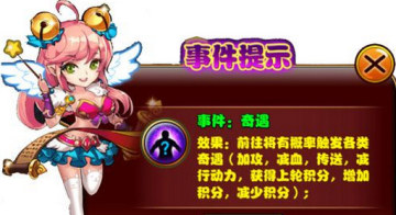 图标同样为紫背景带问号小人,先+25积分,然后随机传送到地图任意一点,如果是没走过的地方,则触发那一点的格子效果(比如是战斗格的话,则会进行战斗,赢了能获得战斗格的积分奖励)